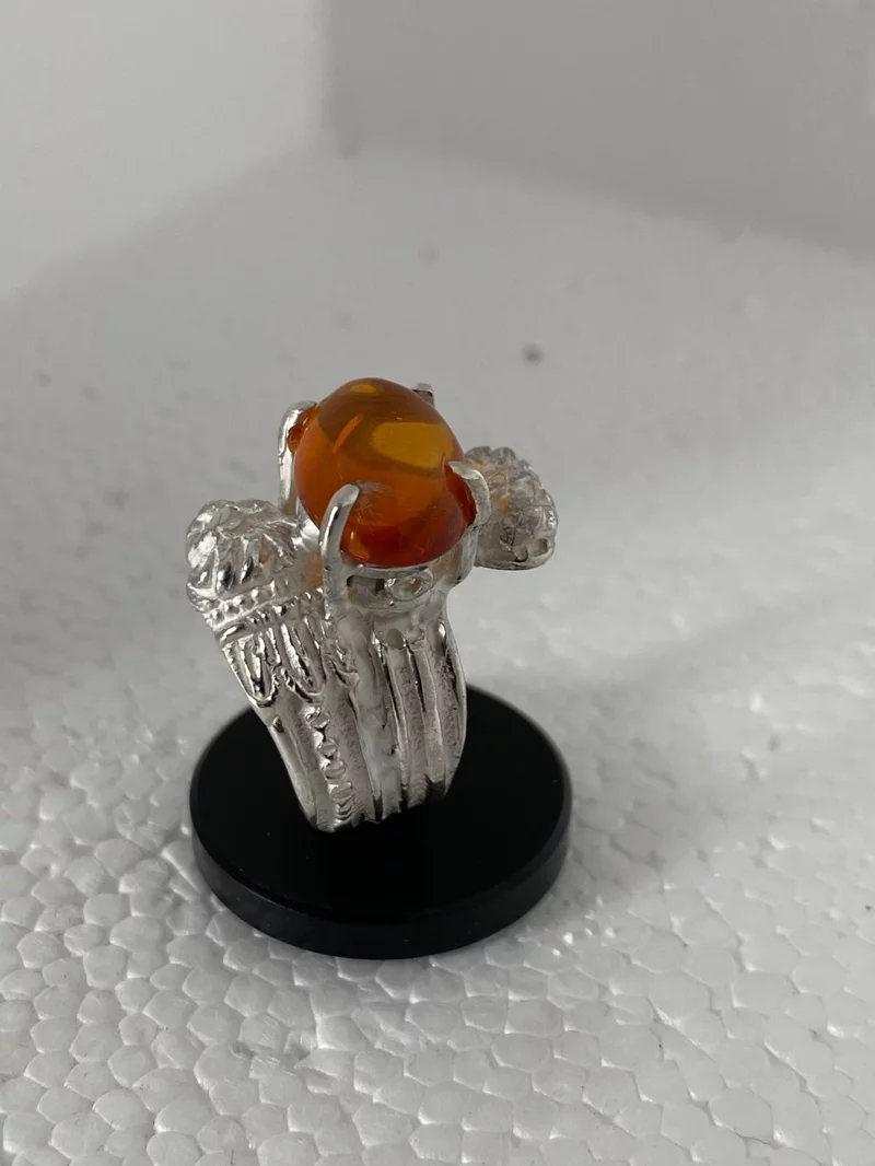 Anello Romeo, anello argento fatto a mano, anello ambra